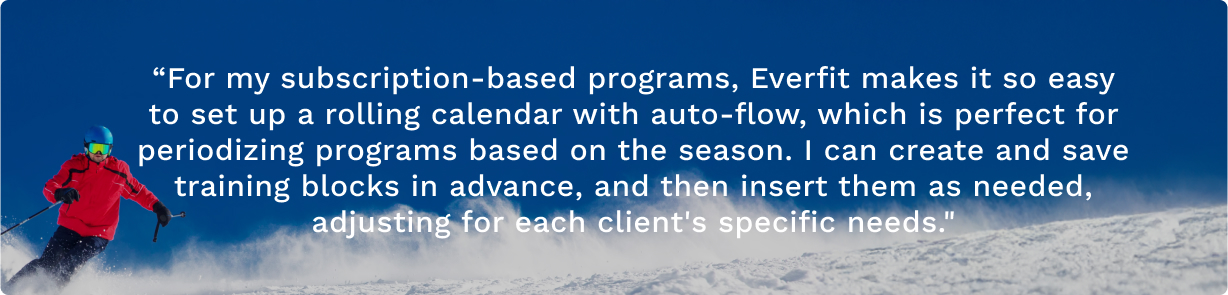 | “Ultimately, I chose Everfit because it’s highly versatile, making it easy to offer subscription-based training programs. I can either start from day one or allow people to join at any point, while also customizing the workouts for each individual.” | ![]() |