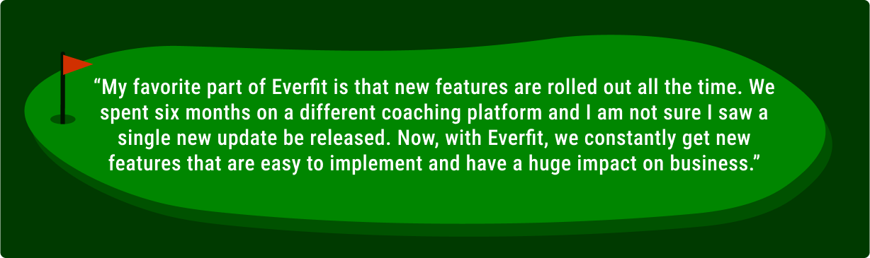 - Constant Update: Everfit is always innovating, changing how the base software works, and rolling out new features. Scott loved how this enhanced his coaching experience and enabled him to take advantage of new tools.
